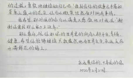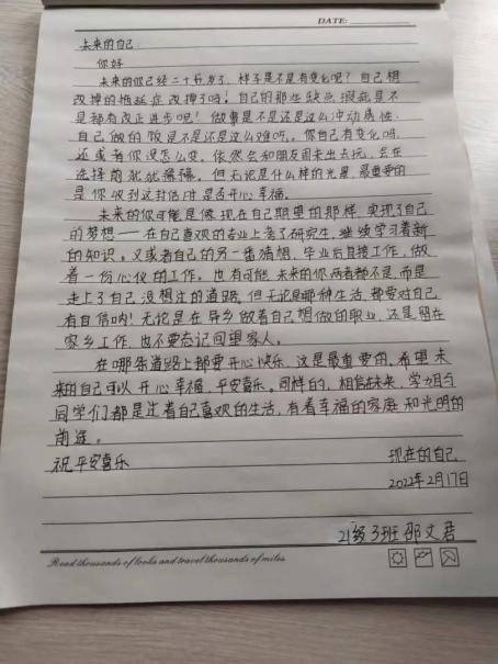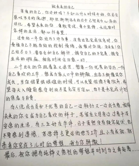 女生每人向未来的自己写一封信,在信中表达自己对未来的期望,促进女生们向自己所期待的目标努力,帮助女生找到前进的方向。