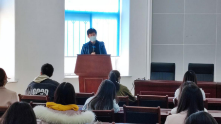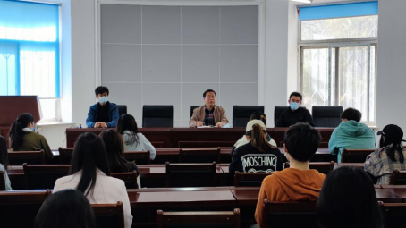 本次会议由党委副书记兼副院长刘长溥主持。首先,他代表学院感谢同学们在校园疫情防控常态化背景下积极配合学校、学院的疫情防控工作,对主动担负重任的学生志愿突击队表示充分肯定。接下来,2018级兼2019级辅导员、学生党支部书记杨瑞峰向学生代表传达学校封闭管理期间各项工作基本要求,深入解读校园疫情防控的最新政策。