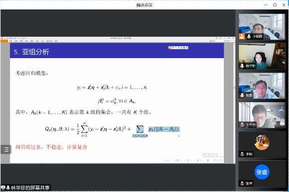 在校园封闭管理期间,为了给学生提供更多的学习资源,提高疫情期间在校学习热情,我院邀请到西南财经大学教授、统计研究中心主任、国际数理统计学会IMS - fellow、享受国务院政府特殊津贴专家林华珍教授于4月15日19:00时在腾讯会议做主题为《Centre-augmented L2-type regularization for subgroup learning*》的报告。