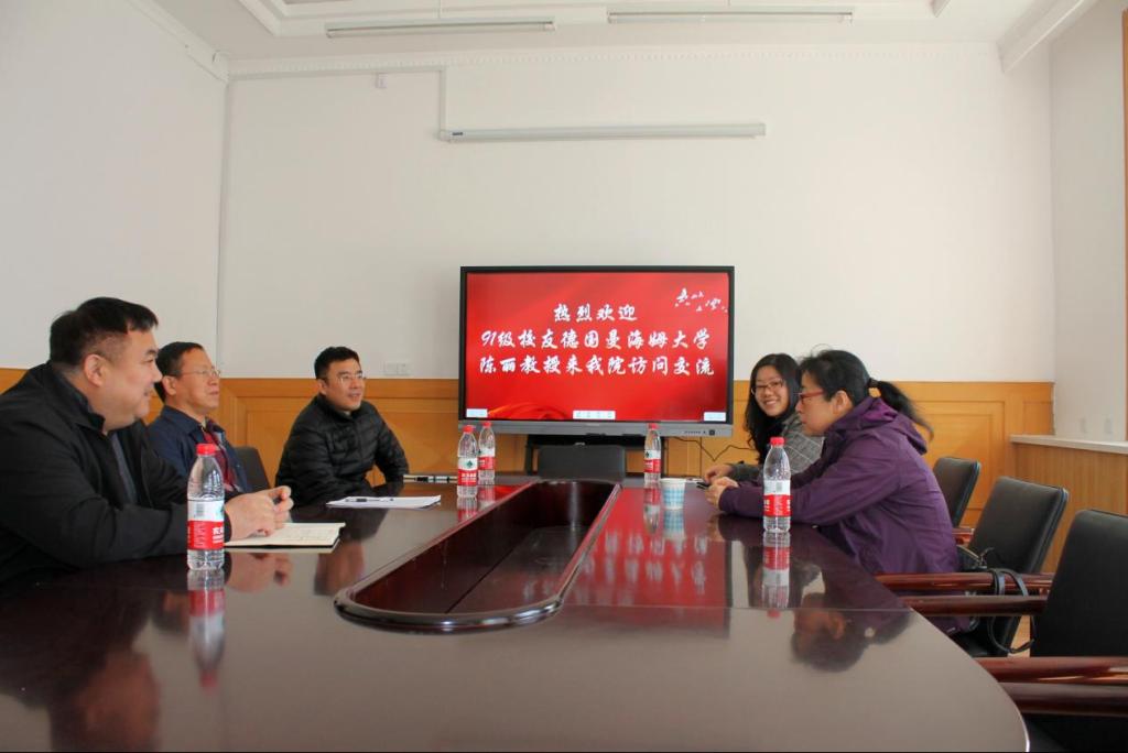 2023年4月7日,我院91级优秀校友德国曼海姆大学陈丽教授回访母校。学院领导班子有关成员在哲理楼237同陈丽教授进行了座谈。王德辉院长介绍了学院近期的发展现状,常青书记介绍了学院相关校友工作,并希望陈丽教授常回母校,加强学术交流,多为学院的发展献计献策。学院党委副书记刘长溥、副院长王金环参加座谈。